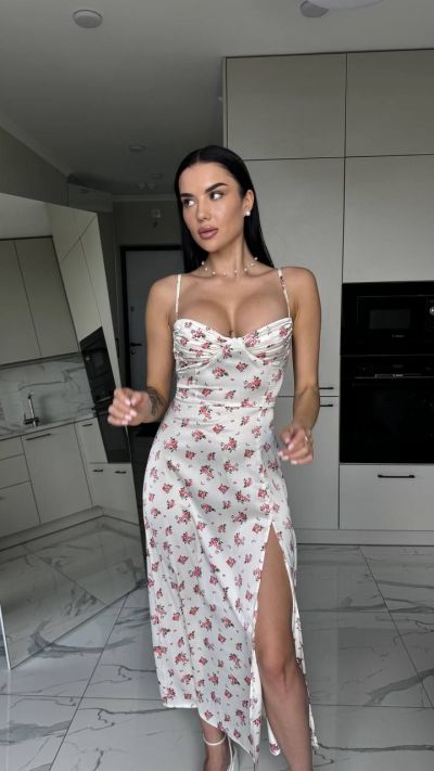 Сукня з корсетною імітацією молочна в квіти №254381