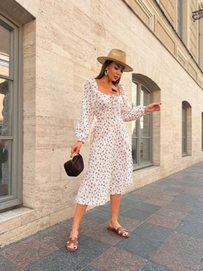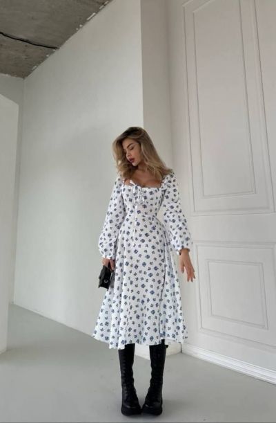 Жіноча муслінова сукня біла в блакитну квіточку №254248