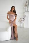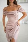 Драга сукня зі спущеними рукавами та драпіруванням у зоні декольте