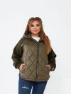 Стильна комбінована куртка підійде на сезон осінь-весна, зручний глибокий капюшон, нашивка на рукаві