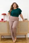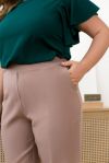Зручні брюки плюс сайз з високою посадкою, до поясу ззаду вшито резинку, спереду - декоративна ширинка, з боків - кишені в шві. Без застібок.