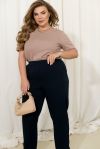 Зручні брюки плюс сайз з високою посадкою, до поясу ззаду вшито резинку, спереду - декоративна ширинка, з боків - кишені в шві. Без застібок.