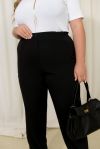 Зручні брюки плюс сайз з високою посадкою, до поясу ззаду вшито резинку, спереду - декоративна ширинка, з боків - кишені в шві. Без застібок.