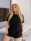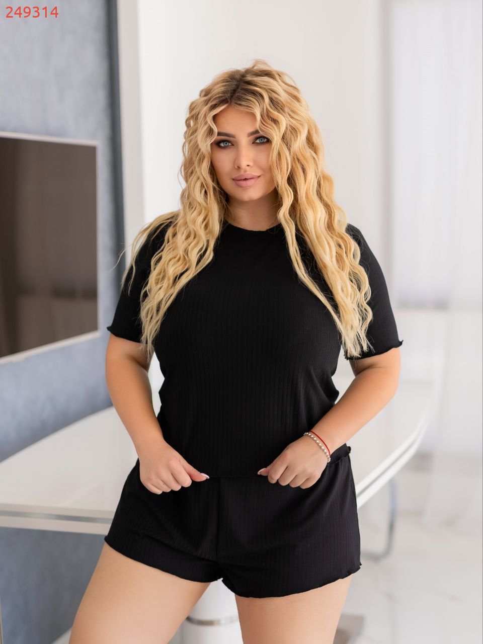 54-56 Об'єм грудей - 110 см, Об'єм талії - 84 (тягнеться до 126 см), Об'єм стегон - 126 см, Довжина футболки - 61см, Довжина рукава - 24 см, Довжина шорт по боковому шву - 28 см