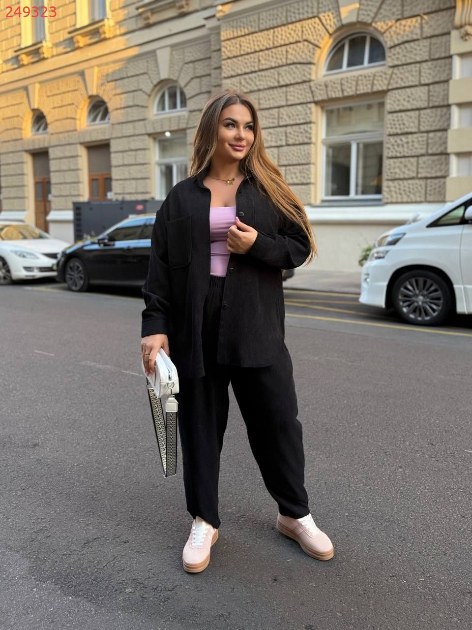 Трендовий костюм двійка-оверсайз.Сорочка вільного крою та Моми з високою посадкою.