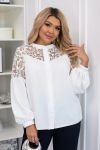 Ця блуза зі вставками з вишивки – ідеальний вибір для тих, хто любить поєднувати елегантність із комфортом. Застібається на гудзики по всій довжині, а на рукавах – манжети з гудзиками для додаткової акуратності та стилю.