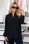 Блуза з вишуканим V-подібним вирізом горловини, що додає образу жіночності та легкості. На рукавах в кінці еластична резинка для зручності та неповторного стилю.