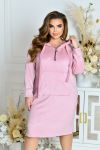 Неймовірно комфортна сукня в спортивному стилі із велюру ( дуже приємний на дотик, розтяжність гарна). В куліску капюшону продітий об’ємний шнурок із основного материалу. Попереду коротка блискавка для зручного надягання. На передній полочці оброблена кишеня «кенгуру». Внизу, з боків, невеликі розрізи