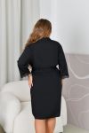 Халат на запАх, під пояс із основної тканини. Рукав 3/4 декорований ніжним мереживом. Є накладна кишеня.
