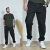 Штани із середньою посадкою, по талії зібрані на резинку, в куліску протягнуто шнурок. Низ на манжетах. В бічних швах оброблені кишені.