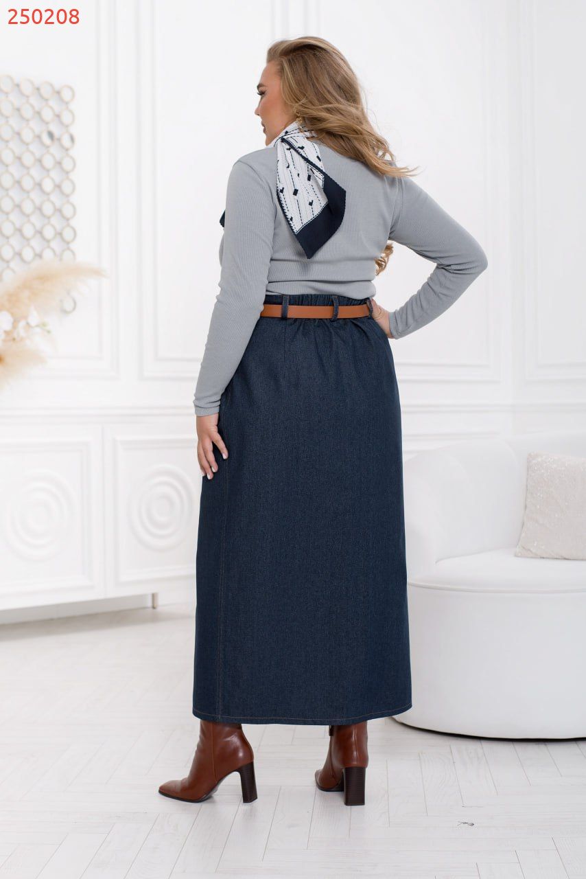 Джинсова спідниця з розрізом – це втілення стилю, що поєднує класичний дизайн з сучасними деталями. Вона виготовлена з якісного деніму, надаючи їй міцність та щільну текстурну поверхню. Велика перевага цієї спідниці полягає у її максі довжині, яка надає їй жіночності та елегантності, роблячи її відмінним вибором для різних сезонів та заходів. Застібка на гудзики дозволяє легко регулювати висоту розрізу, забезпечуючи комфорт та можливість вибору. На талії розміщені шлейки для поясу, дозволяючи доповнити спідницю улюбленим аксесуаром. Джинсова спідниця чудово вписується в різноманітні стилі. Ви зможете створювати безліч образів, поєднуючи її з топами, сорочками, футболками або светрами. Ця спідниця дозволяє легко створювати як повсякденні, так і вечірні вигляди, залежно від аксесуарів та взуття, які ви виберете для завершення образу.