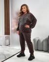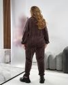 Модель складається з вільного світшота з V-подібним вирізом, а також зручних штанів на манжетах.