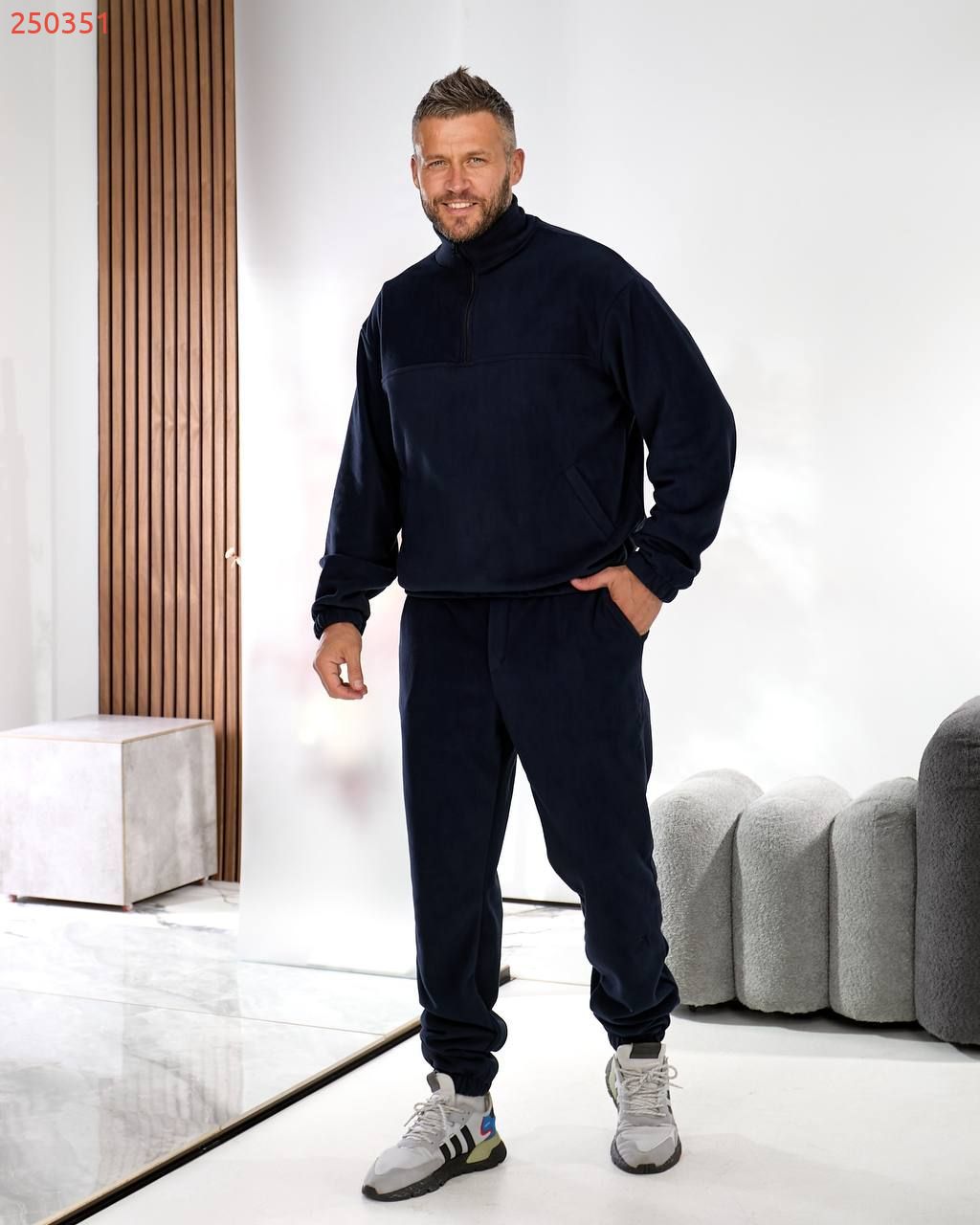 Чоловічий костюм з флісу – це втілення комфорту і стилю в повсякденному одязі. М'який фліс дбайливо зберігає тепло, дозволяючи шкірі дихати, а сучасний крій підкреслює мужність і свободу рухів. Костюм ідеально підходить як для прогулянок у прохолодну погоду, так і для домашнього затишку. Лаконічний дизайн робить його універсальним рішенням: він однаково органічно виглядає і в розслабленому, і в більш активному образі.