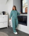 Довжина кофти 65 см., довжина брюк 104 см. Костюм повномiрний майже на розмiр, добре тягнеться.