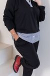 Стильний костюм виготовлений з якісної двунитки гарної розтяжності та котону. Подовжена туніка вільного крою, V-подібний виріз візуально звузить плечі і зробить фігуру стрункішою.