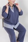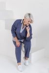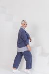 Стильний костюм виготовлений з якісної двунитки гарної розтяжності та котону. Подовжена туніка вільного крою, V-подібний виріз візуально звузить плечі і зробить фігуру стрункішою.