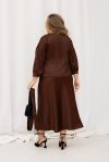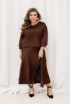 Елегантний святковий костюм зі спідницею, створений із розкішного костюмного шовку, стане вашим ідеальним образом для новорічних свят. Він поєднує витонченість і комфорт, роблячи вас зіркою будь-якої святкової події. Блуза з V-подібним вирізом створює акцент на зоні декольте, додаючи образу жіночності. Спущена лінія плечей та рукави довжиною 3/4 з манжетами на ґудзиках забезпечують стильний вигляд і зручність. Довга спідниця на резинці комфортно сідає по фігурі, а текстильний пояс, що входить до комплекту, дозволяє підкреслити талію та додає завершеності образу. Цей костюм створений, щоб ви відчували себе впевнено й виглядали розкішно під час зустрічі Нового року чи будь-якого іншого особливого заходу.