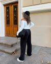 Не мнеться . Брюки високої посадки , талія на резинці, кишені.