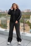 Кофта вільного крою, комір з бічними кишенями декоровані шкірою, з застібкою на блискавці, лампаси на рукавах,довгий спущений рукав, манжети на резинці. Брюки: висока посадка,прямий вільний крій, спереду вставки зі штучної шкіри, сзаду -тринитка, пояс на резинці, лампаси з боків.