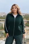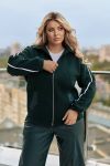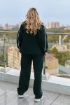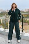 Кофта вільного крою, комір з бічними кишенями декоровані шкірою, з застібкою на блискавці, лампаси на рукавах,довгий спущений рукав, манжети на резинці. Брюки: висока посадка,прямий вільний крій, спереду вставки зі штучної шкіри, сзаду -тринитка, пояс на резинці, лампаси з боків.
