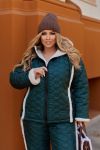 Комплект- куртка і штани, плащівка з силіконом, стьобаний цікавим дизайном, оформлен дуже красиво штучним хутром. Куртка вільного крою, з кишенями , спереду застібка -молнія , з капюшоном. Куртка повністю на підкладці зі штучного хутра. Штани стьобані вишивкою з звичайною підкладкою , теплі, висока посадка на резинці з кишенями і знизу прямі.