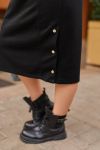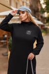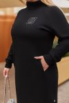 Сукня вільного крою, на грудях- прикраса зі страз, рукав реглан, з кишенями, знизу з розрізами на кнопках.
