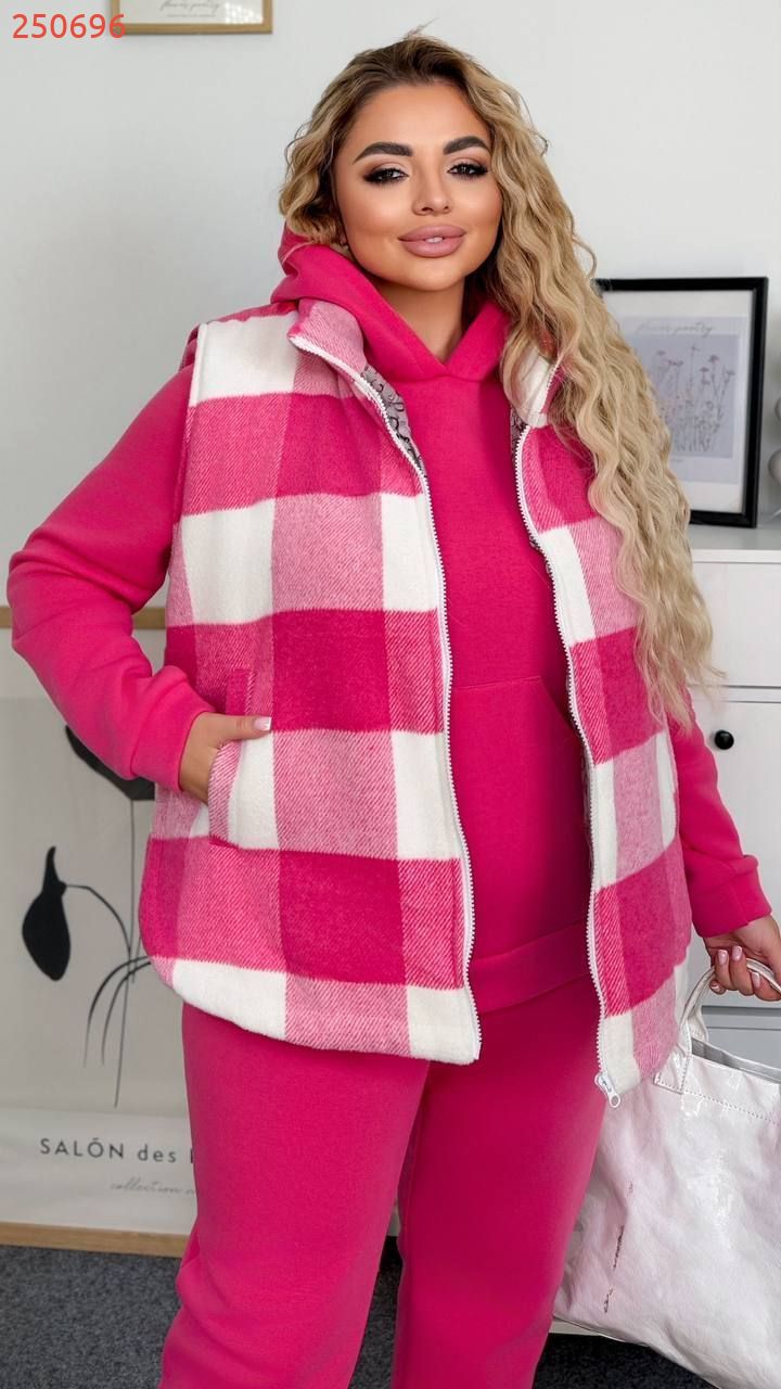 Осінній утеплений костюм трійка - жилет + худі + штани . Жилет на блискавці , комір стійка , з кишенями .