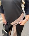 Штани з двоколірним ефектом та оригінальним кроєм, візуально робить стрункішою. Еластичний пояс на талії зручно фіксує посадку.