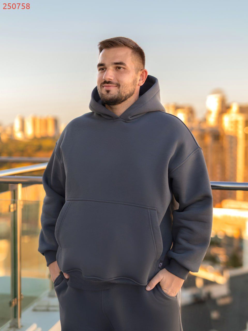 Зріст 185 см, вага 94 кг. Розмір худі та джоггерів - 56-58.