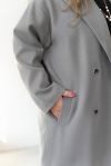 Стильне монохромне двобортне пальто oversize ідеально впишеться як в строгий діловий стиль, так і в актуальні образи в стилі casual. Воно буде ідельно поєднуватися з елегантними брюками, спідницями і сукнями, а також з комфортними спортивними костюмами та кросівками. Модель на підкладці доповнена довгими рукавами з приспущеною лінією плечей, відкладним коміром і зручними кишенями.