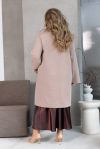 Вільний крій дарує легкість і свободу рухів, а комір-стійка додає образу елегантної стриманості. Стильний декоративний шов підкреслює силует і надає особливого шарму. Довгі рукава створюють гармонійний баланс, а зручні кишеньки та класична застібка на ґудзики роблять пальто не лише красивим, а й неймовірно практичним.