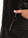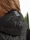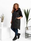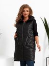 Стильна стегана жилетка прямого крою з накладними кишенями, зручний глибокий капюшон, якісна фурнітура, нашивка