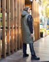 Стильна стегана жилетка прямого крою з накладними кишенями, зручний глибокий капюшон, якісна фурнітура, нашивка