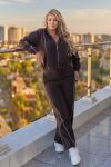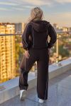 Кофта на блискавці з капюшоном вільного прямого крою, зручні кишені по боках, по низу на резинці з фіксатором,для коригування потрібного обʼєму і довжини. Кофта спереду і ззаду прикрашена кантом. Штани з кишенями, вільні,знизу на резинці з фіксацію, можна затягнути, по боках- подвійний лампас.