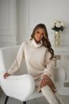 Об’ємні рукави завершені манжетами, що робить образ гармонійним і сучасним.