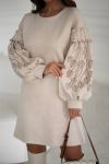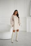 Сукня прямого крою з акцентом на об’ємних рукавах. Довжина вище коліна робить силует легким і сучасним,
