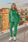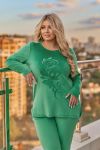 ●Світшот вільного крою з довгим рукавом, прикрашений аплікацією з того ж велюру у вигляді об’ємної квітки на грудях.