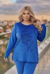●Світшот вільного крою з довгим рукавом, прикрашений аплікацією з того ж велюру у вигляді об’ємної квітки на грудях.