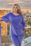 ●Світшот вільного крою з довгим рукавом, прикрашений аплікацією з того ж велюру у вигляді об’ємної квітки на грудях.