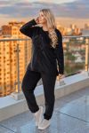 ●Світшот вільного крою з довгим рукавом, прикрашений аплікацією з того ж велюру у вигляді об’ємної квітки на грудях.