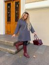 Вільний крій, спущена лінія плеча, розрізи з боків.та кишень.Рукав 3/4.