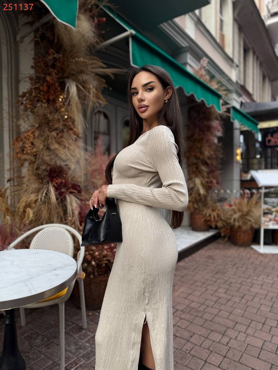 Тканина: Трикотажна сукня максі. Базова модель облягаючого крою з довгим рукавом
