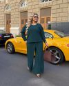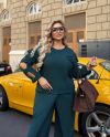 Костюм двійка, елегантна та комфортна модель, тканина тягнеться. Блуза вільного крою з вишуканим акцентом- квіткою на грудях, та оригінальними прорізами на рукавах.