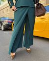 Штани з декоративним запахом, візуально подовжують ноги. Еластичний пояс на талії зручно фіксує посадку.