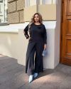Костюм двійка, елегантна та комфортна модель, тканина тягнеться. Блуза вільного крою з вишуканим акцентом- квіткою на грудях, та оригінальними прорізами на рукавах.