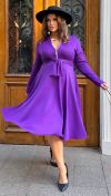 Яскрава сукня з пишною спідницею , з переду на блискавці , пояс з основної тканини .