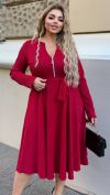 Яскрава сукня з пишною спідницею , з переду на блискавці , пояс з основної тканини .