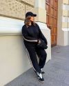 Стильний прогулянковий костюм, штани на високій посадці, кругова резинка, манжети. Кофтинка вільного крою, декорована стильними лампасами. Костюм виготовлений с двунитки, гарна розтяжність.