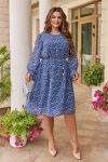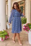 Сукня трапецієподібного силуету з дизайнерським квітковим принтом, який створює грайливий настрій за рахунок легкості тканини та силуету моделі. Сукня з округлою горловиною, нагрудними виточками, перед та спинка сукні на підкладці. Рукав втачний одношовний, довгий зі складанням на угорку та рюшею.