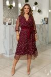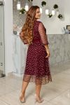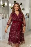 Елегантне жіноче плаття, виконане з кріп дайвінгу (тягнеться) і сітки з блиском. Перед сукні з імітацією запаху. До сукні додається знімний пояс із основної тканини. У такій сукні будь-яка жінка зможе відчути себе справжньої леді та королевою вечора, ця сукня здатна надати жінці ніжності, легкості та елегантності.
